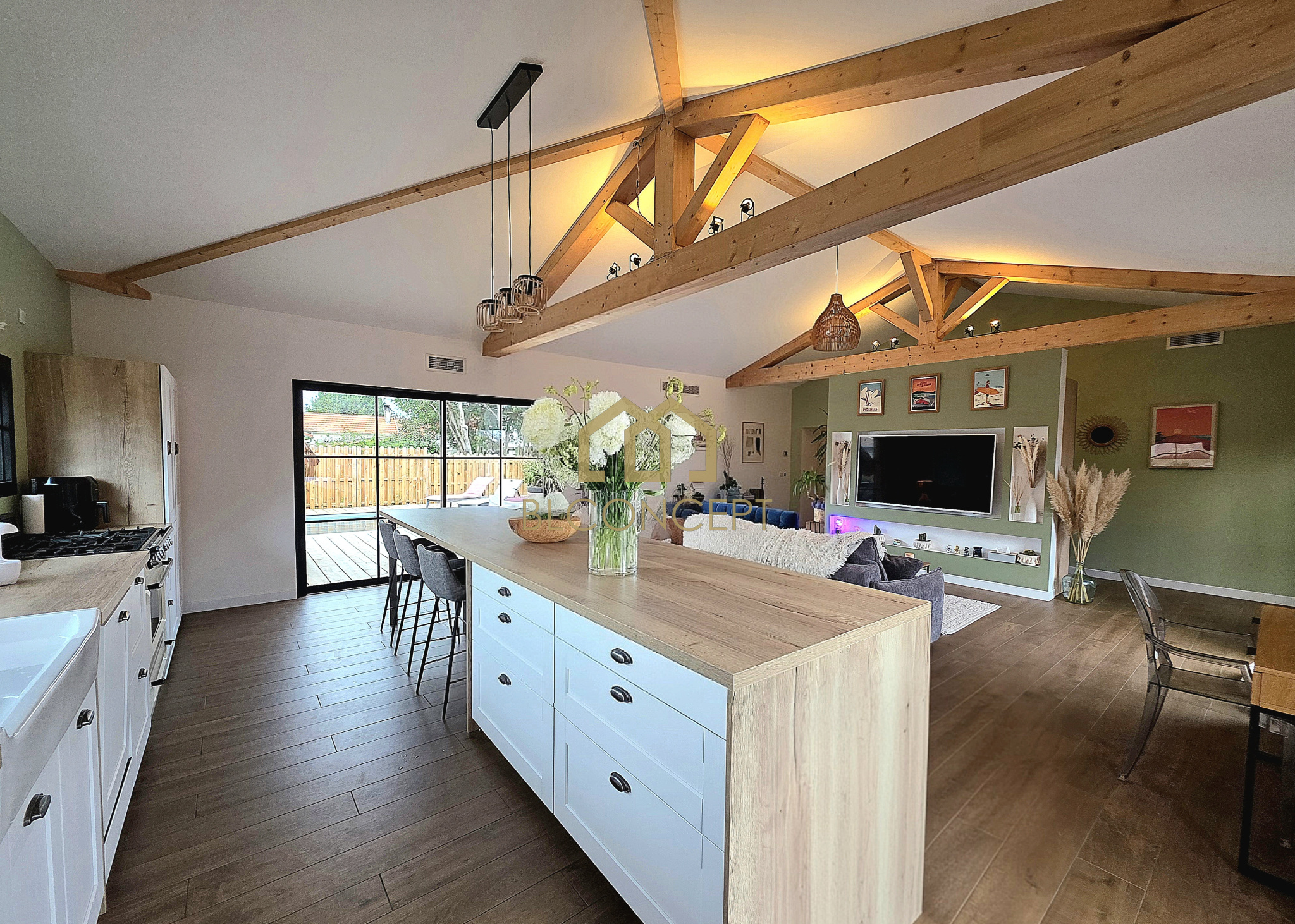 Il se compose d'une entrée, d'une cuisine de qualité aménagée et équipée, un salon salle à manger, 1 chambre avec dressing, 1 chambre avec placard, 1 salle de bain complète avec douche et baignoire, à l'étage vous disposerez d'un bureau de 12m2 utilsable en chambre et une terrasse couverte avec cuisine d'été.