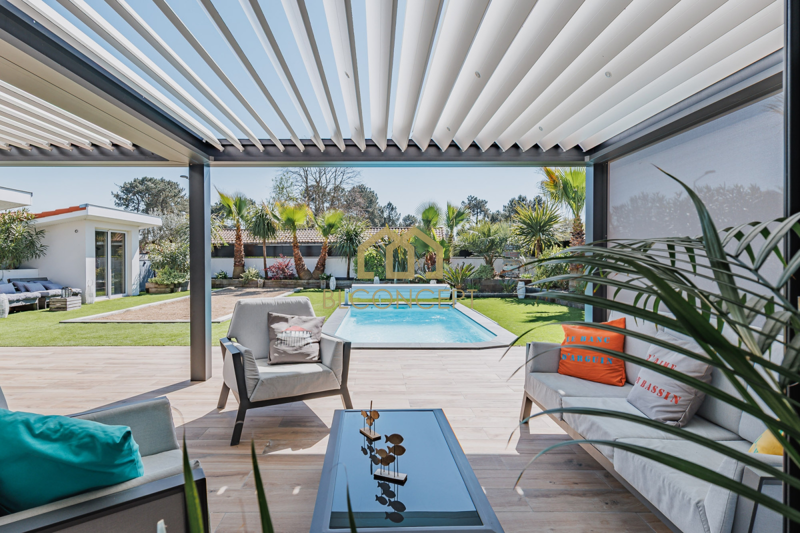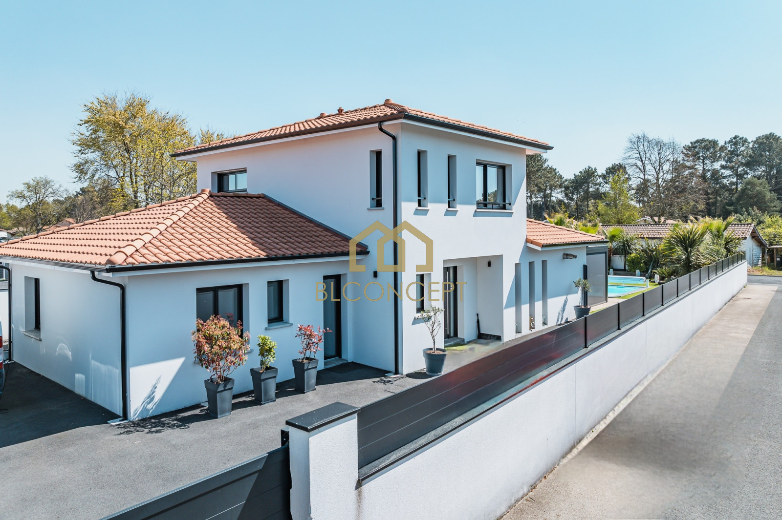 Julie Denaud, Agence BL Concept, vous présente en exclusivité sur Cazaux, cette magnifique maison en R+1 de 159m2 sur 700m2 de terrain. Elle se compose d'une très belle pièce de vie avec cuisine ouverte équipée et aménagée très lumineuse, donnant sur un jardin paysagé luxuriant. Pour la partie nuit, vous pourrez profiter de 2 chambres en rdc, ainsi que d'une salle d'eau. A l'étage, un espace bureau pouvant être transformé en chambre ainsi qu'une suite parentale avec salle de bain et dressing. Pour profiter des extérieurs, une piscine chauffée, un boulodrome, 2 abris pouvant être transformés en pool house et salle de sport. Un garage et plusieurs places de stationnement sur la parcelle complète ce bien. N'hésitez pas à me contacter pour une visite sans tarder!