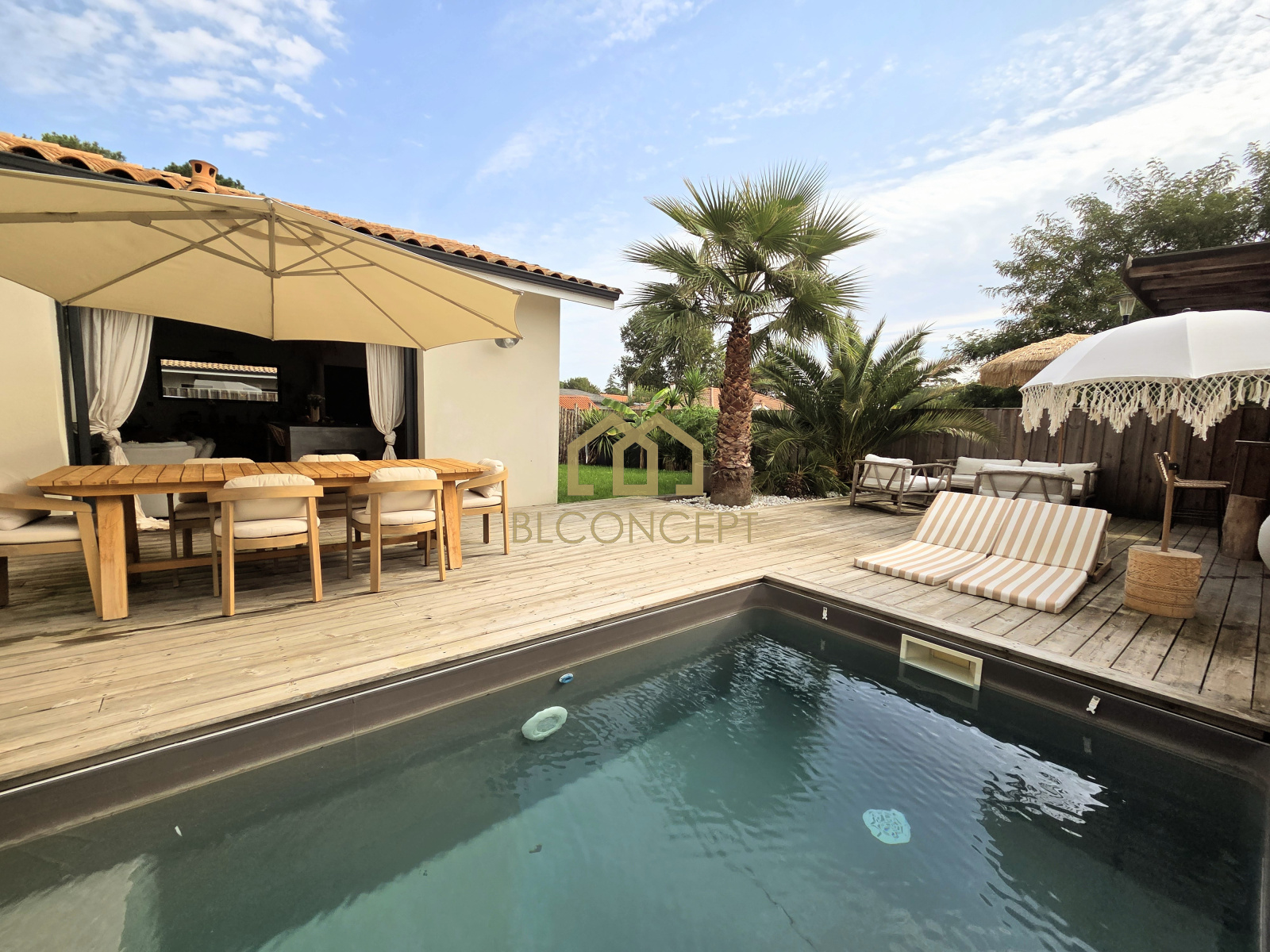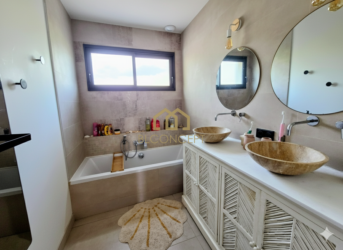 Pour parfaire ce bien vous disposerez d'une piscine orientée plein sud, chauffée, un pool house, un boulodrome, le tout sur une parcelle de 480m2 paysagée sans vis à vis.
