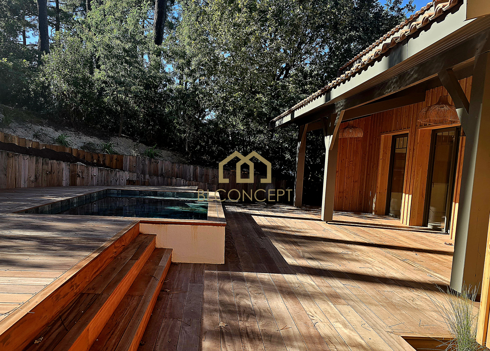 Superbe villa entièrement rénovée. située dans un quartier calme du Pyla, elle bénéficie d'une position dominante offrant une belle vue sur la forêt. Elle comprend quatre suites parentales ainsi qu'un séjour spacieux, cuisine aménagée et équipée À l'extérieur, vous profiterez d'une terrasse ensoleillée et d'un terrain entièrement paysagé avec piscine, terrain de pétanque, Garage de 40 m2 le tout sur une parcelle de 900m2
