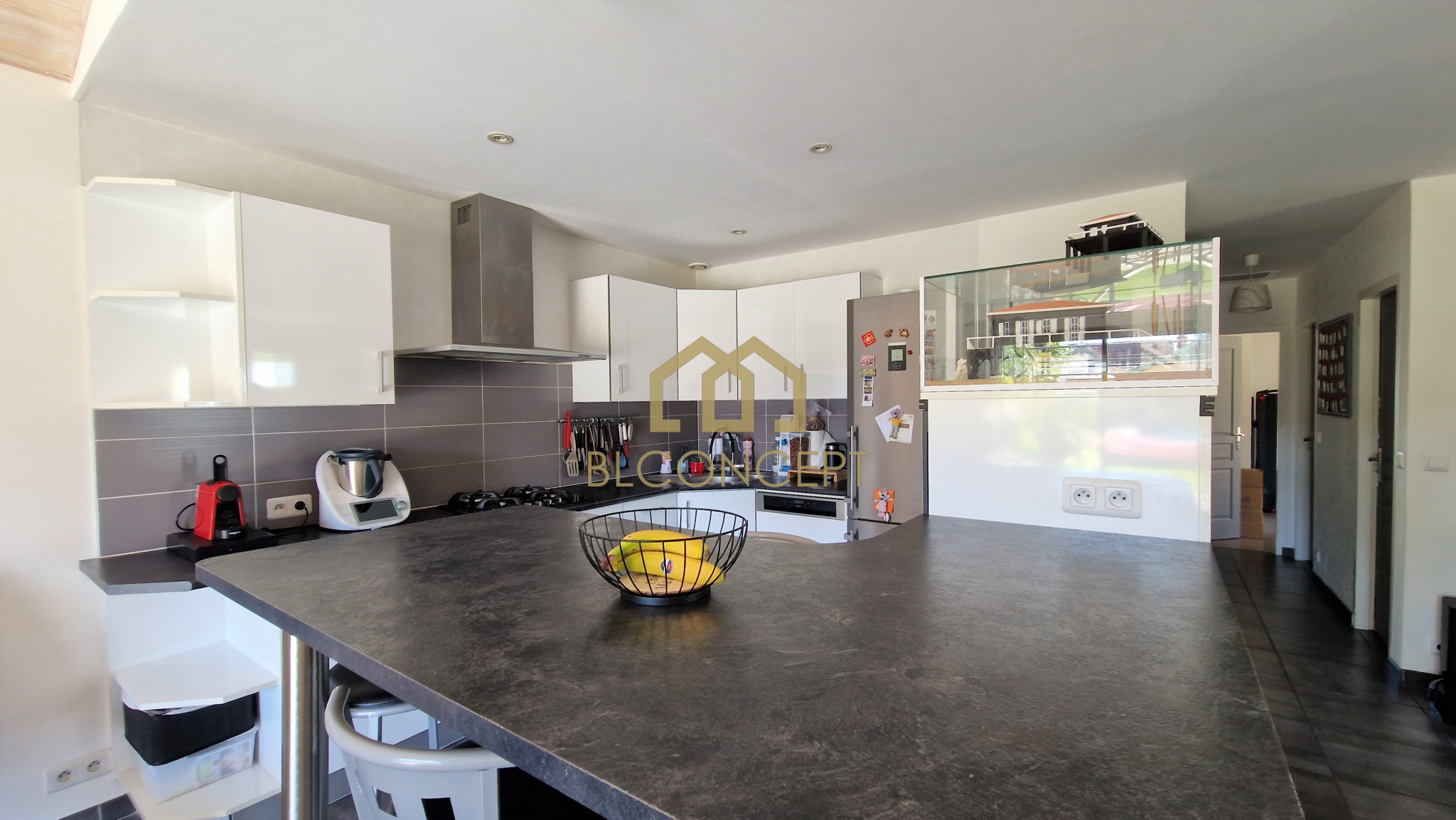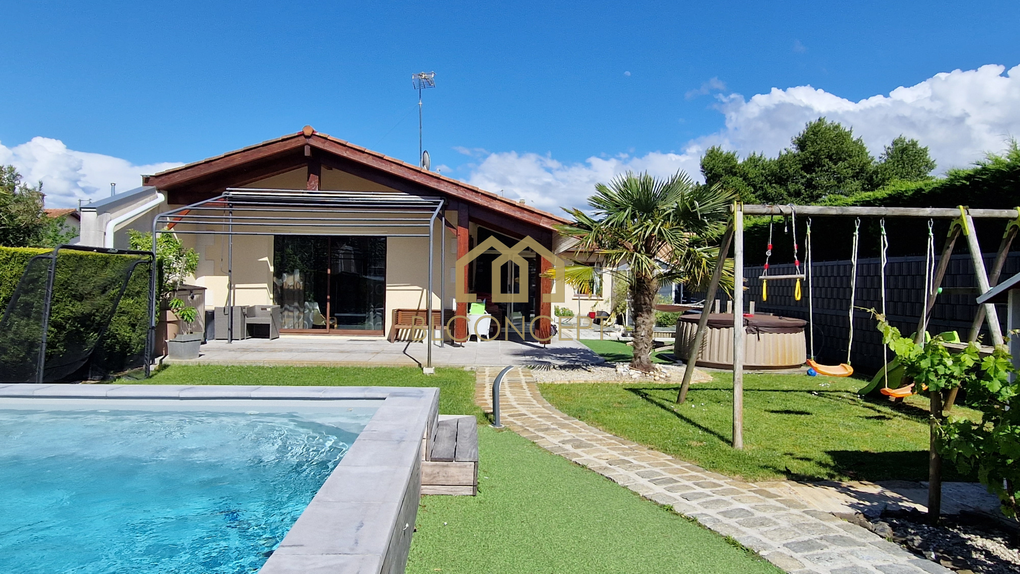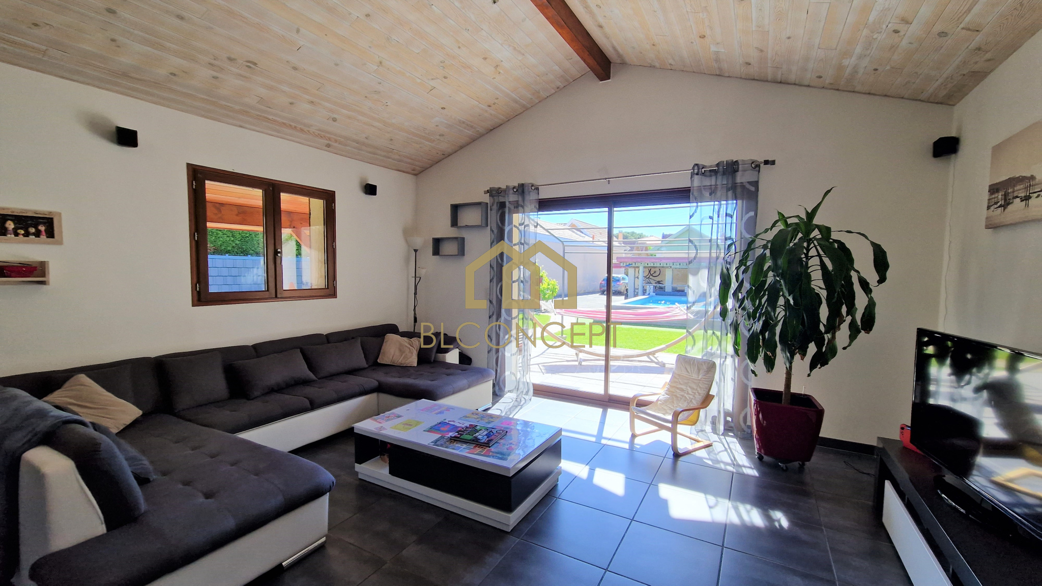Emilie Diego (06 64 45 10 82) agence BL Concept vous propose cette villa de plain pied. Elle se compose d'une entrée, d'une belle pièce à vivre cuisine US, salon salle à manger avec baie à galandage donnant sur une terrasse couverte et la piscine, un cellier, 3 chambres, 1 bureau, 1 SDE, 1 SDB.
