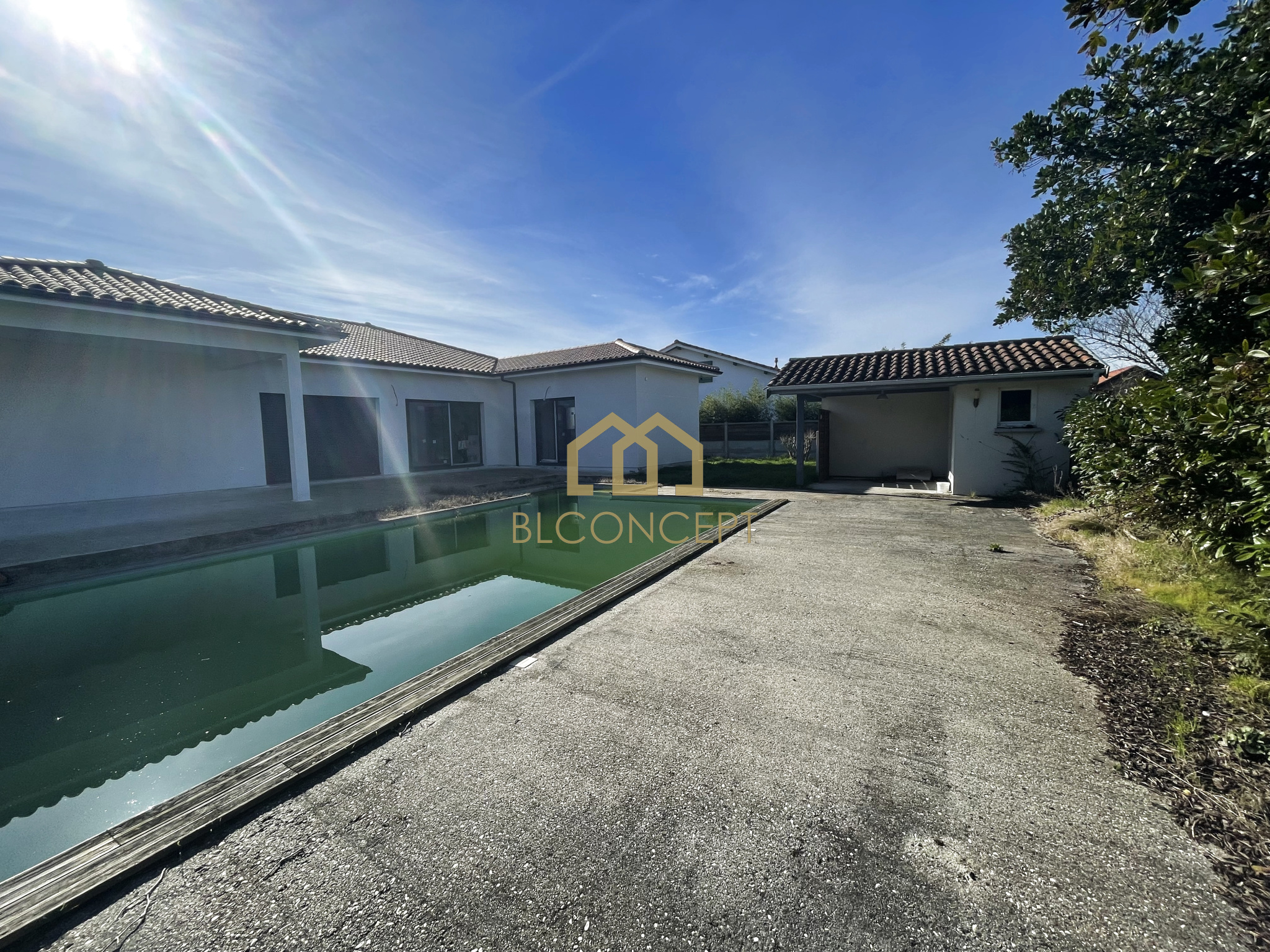 Garage de 23 m², cellier de 8 m², terrasse couverte, piscine 10x5 avec local technique et pool house.